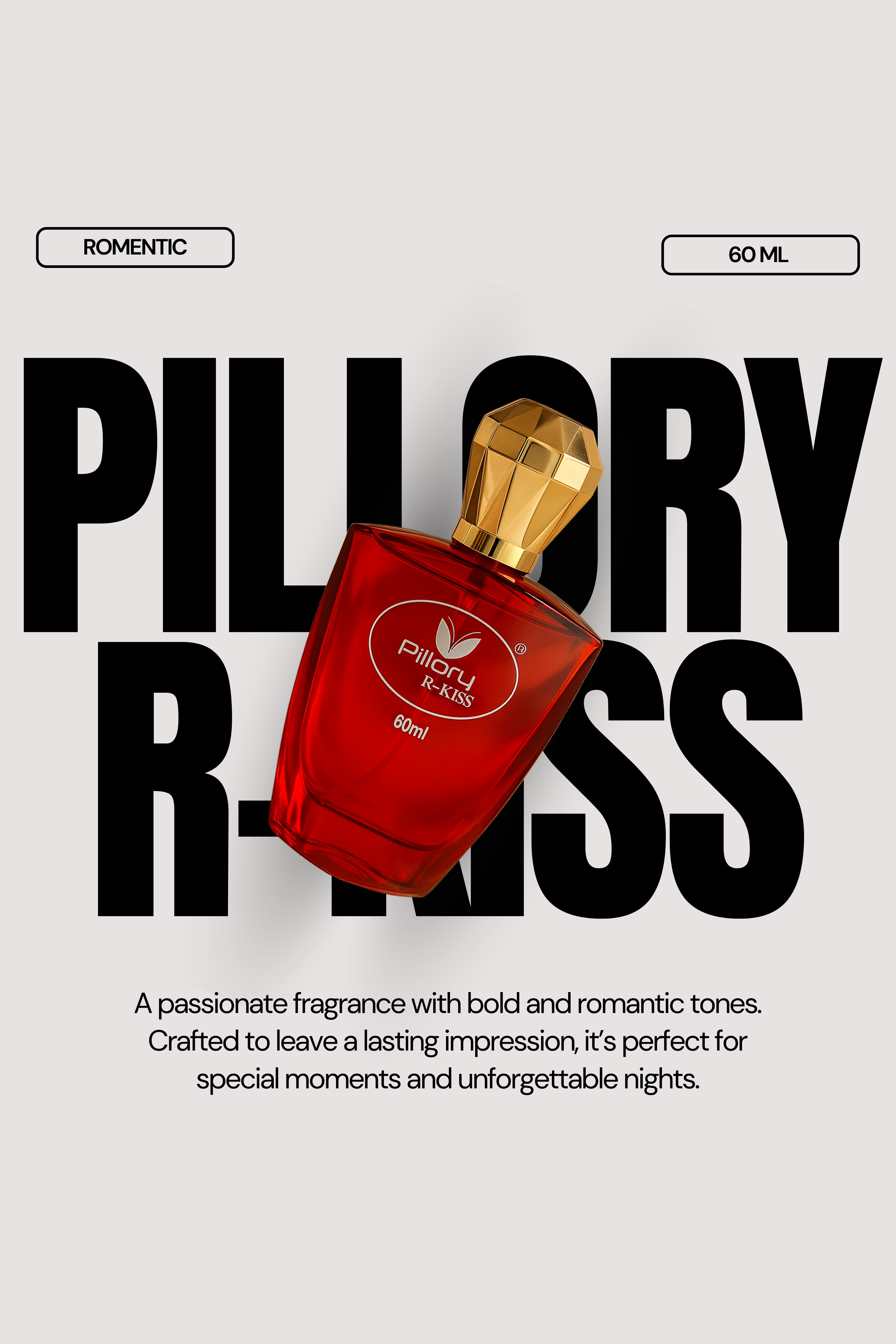Pillory R-Kiss 60 ML Fragrance Pyramid Top Notes: Apple Blossom, Peach, Ivy Heart Notes: Hibiscus, Peony, Jasmine, Rose Base Notes: White Musk, Amber, Sandalwood Fragrance Story Pillory R-Kiss is more than a perfume—it’s an emotion bottled in elegance. Crafted for women who embody grace, confidence, and timeless beauty, R-Kiss represents the power of attraction and the mystery of a lingering kiss. The fragrance opens with the fresh sweetness of apple blossom and peach, touched by a hint of green ivy. This delicate beginning immediately draws attention, like the first spark of romance. As the scent unfolds, the heart blooms into a rich bouquet of hibiscus, peony, jasmine, and rose—a floral harmony that exudes femininity, passion, and sophistication. It is both bold and tender, capturing the essence of a woman’s inner strength and sensual charm. Finally, the base lingers with creamy sandalwood, glowing amber, and sensual white musk. This warm, inviting dry-down leaves a powerful trail that lasts all day and into the night—perfect for unforgettable moments. Character & Feel Type: Floriental – warm, spicy, floral, and woody Personality: Feminine, vintage-inspired, bold yet elegant Vibe: Sensual • Confident • Classy • Irresistible When to Wear Perfect for evenings, romantic dates, and celebrations Best in cooler seasons when its richness shines Ideal for women who want to stand out with elegance